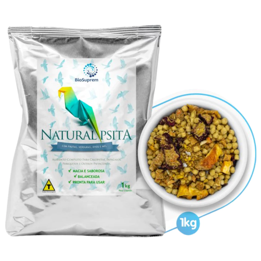 A farinhada BioSuprem Natural Psitacídeos é uma ração completa para psitacídeos, macia, altamente palatável, com grãos integrais extrusados, frutas desidratadas, ovos e mel puríssimo. Assegura ao pássaro os níveis adequados de vitaminas, proteínas, macro e micro minerais para todas as fases de vida, promovendo alto rendimento na reprodução, no crescimento e na expressão da plumagem.